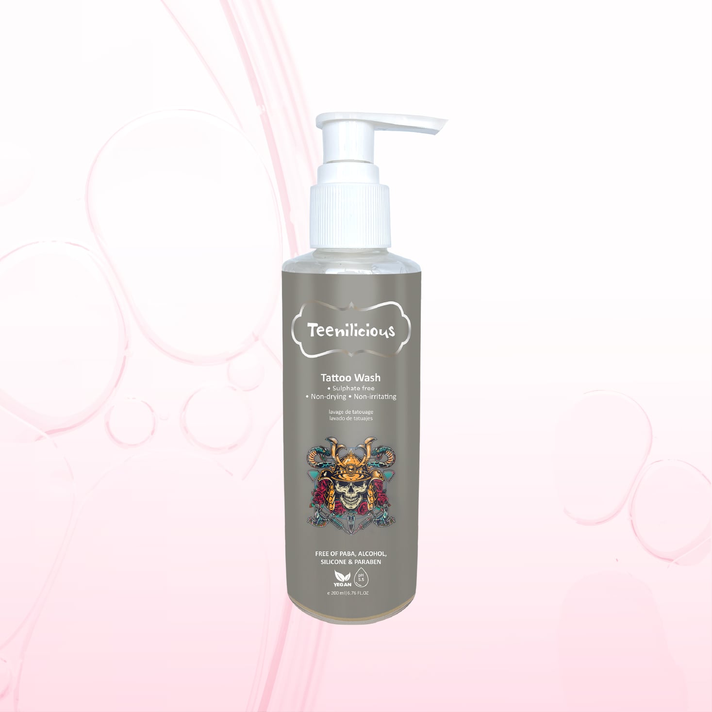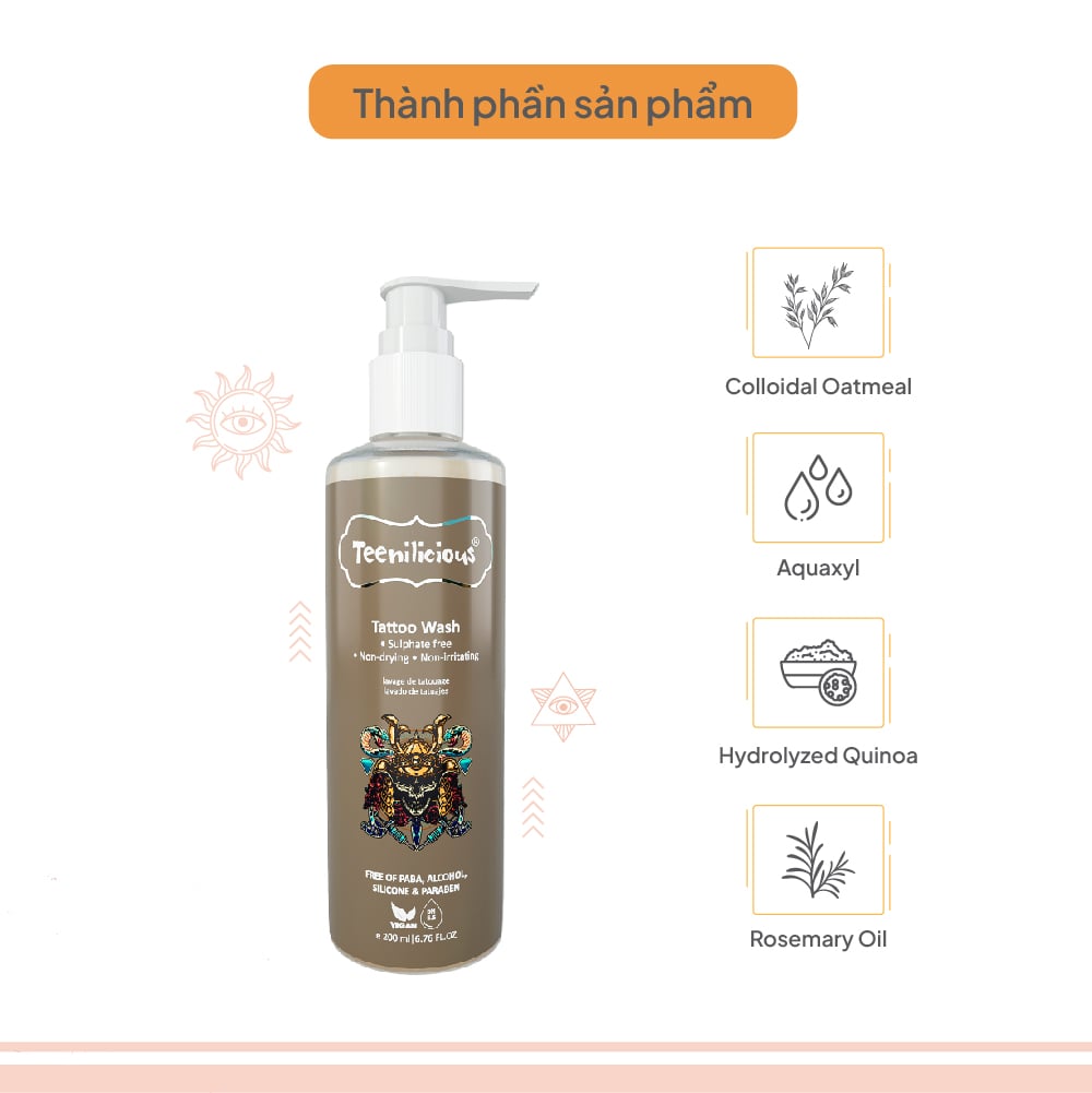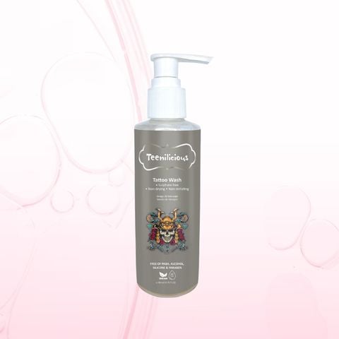 Nước vệ sinh hình xăm Teenilicious Tattoo Wash là dung dịch làm sạch nhẹ nhàng và giữ ẩm dành riêng cho vùng xăm. Đồng thời, sản phẩm giúp giảm mẩn đỏ, giảm kích ứng da, giúp duy trì độ pH cho là 5,5 mà hạn chế gây khô da.