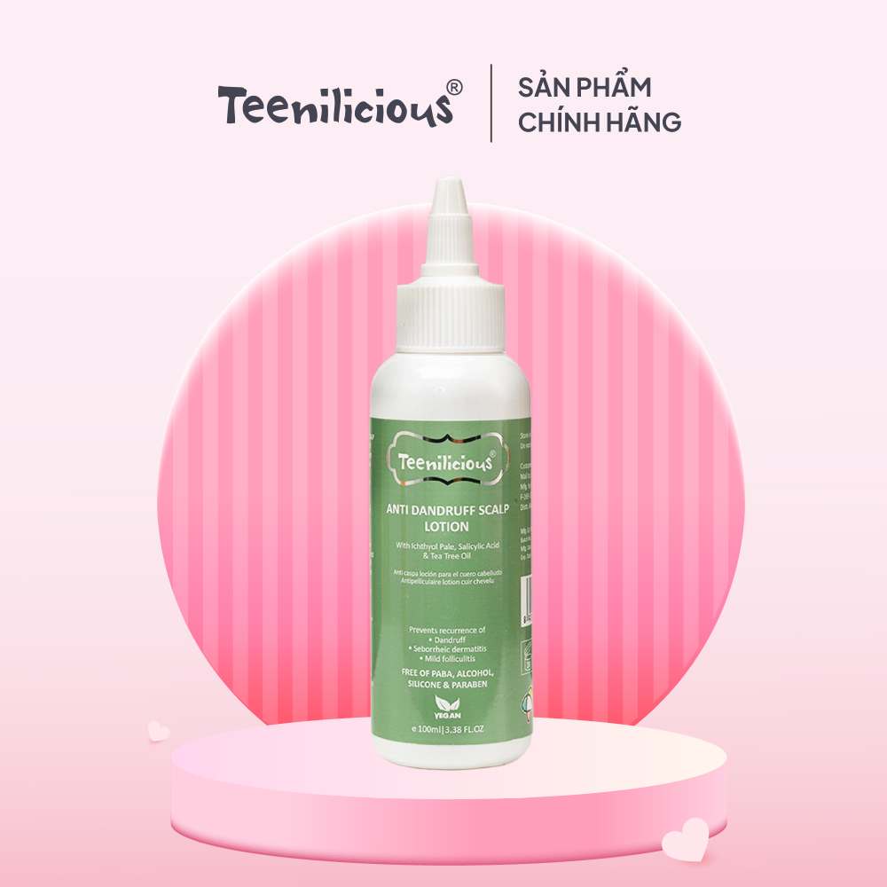Teenilicious Anti Dandruff Scalp Lotion là sữa dưỡng ẩm da đầu với chiết xuất từ thiên nhiên và dịu nhẹ cho làn da nhạy cảm, đặc biệt phù hợp với các bạn trẻ tuổi teen. Sản phẩm giúp làm dịu da, hỗ trợ giảm gàu và góp phần giảm các nguyên nhân gây khó chịu da đầu, bít tắc lỗ chân lông. Teenilicious Anti Dandruff Scalp Lotion hỗ trợ duy trì da đầu khỏe mạnh, góp phần hạn chế tình trạng gàu quay lại, mang lại cảm giác thoải mái và bảo vệ lâu dài cho da đầu.
