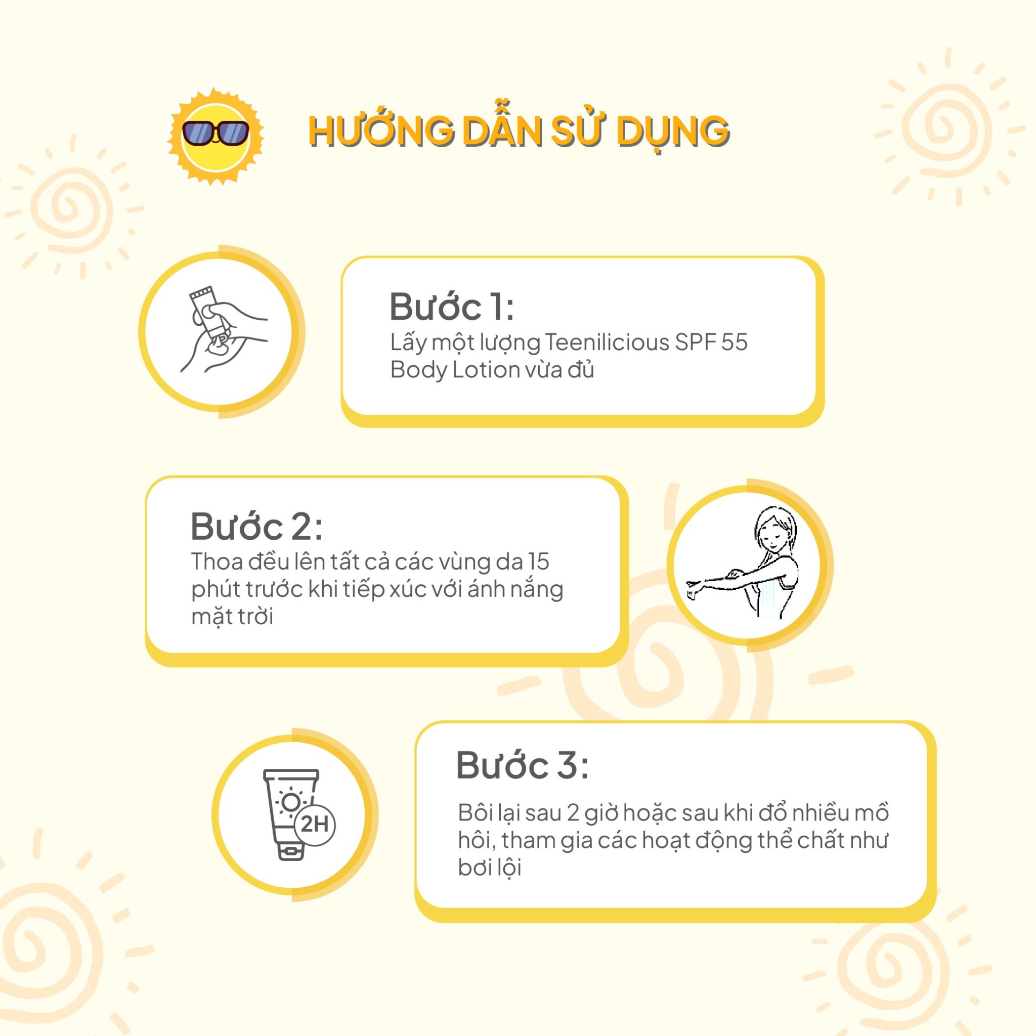 Bước 3: Sử dụng lại sau 2 giờ hoặc sau khi đổ nhiều mồ hôi, bơi lội, hoạt động thể chất.